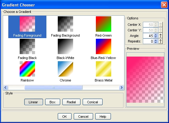 Click on the images below for full size pictures of the gradient and texture pickers.
